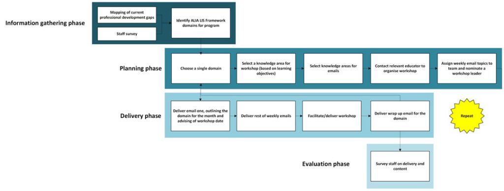 To address this, the Queensland University of Technology Library (QUT Library) created a Framework-led PD program, ensuring alignment with nationally recognised competencies and standards. The program was developed to be sustainable, whilst building on and complementing the library’s existing PD initiatives.