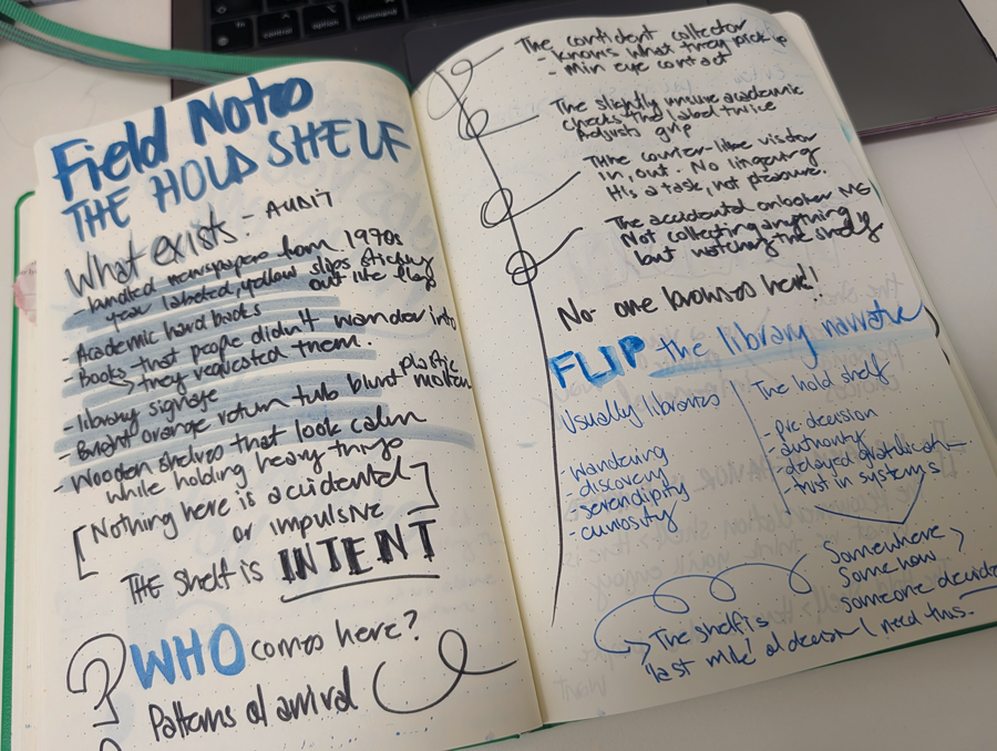 People arrive at the hold shelf with their thinking already done, and you can see it in their bodies before you see it in their hands. Some walk straight in, barely slowing, reaching without hesitation, lifting and stacking books without rereading the titles, their grip confident and practised, already-decided hands treating the book not as a discovery but as a retrieval. Others approach more carefully, reading the slip twice, checking the name (is that me?!), adjusting a bag strap, shifting the book from one arm to the other before committing to the lift, and when they do take it, holding it closer than necessary, as if it’s fragile, or private, or both.